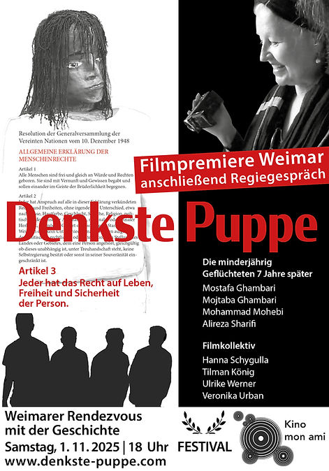 Mostafa, Mojtaba, Mohebi und Alireza aus Afghanistan formten damals bei Veronika Urban in der Volkhochschule aus Pappmaché Puppen, übergroß der Wächter über die Menschenrechte. Hanna Schygulla drehte darüber einen Film, „Die Unbegleiteten“ (2017).